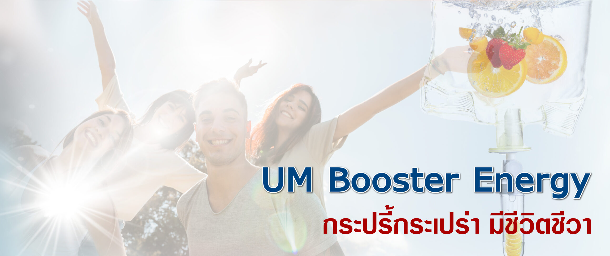 UM Booster Energy โปรแกรมเพิ่มความมีชีวิตชีวา กระปรี้กระเปร่า เป็นสูตรการผสมผสานวิตามินที่มีความเข้มข้นพิเศษของทาง UM Clinic จะช่วยในการฟื้นฟูและเสริมสร้างภูมิต้านทาน พร้อมทั้งยังช่วยรักษาอาการเสื่อมของระบบการทํางานของร่างกาย และสร้างความสดชื่นได้ดี