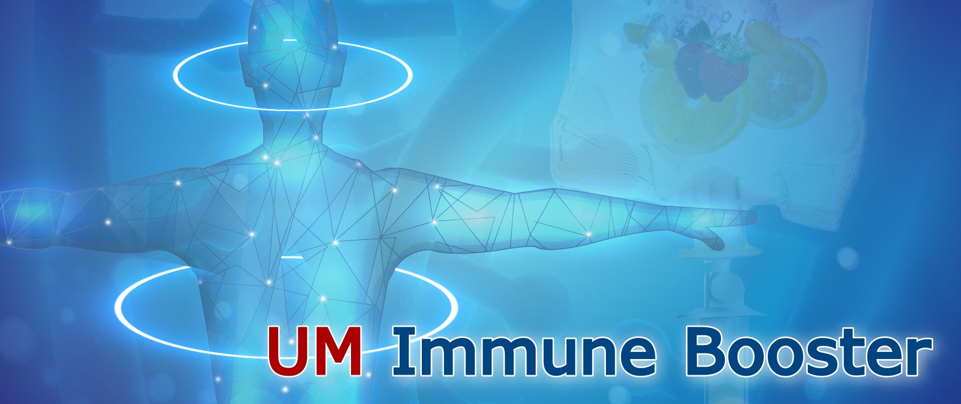 UM Immune Booster คือวิตามินซีปริมาณความเข้มข้นสูง และกรดอะมิโนหลากหลายชนิดที่ล้วนมีส่วนช่วยในการต่อต้านอนุมูลอิสระ หลักการทำงานของโปรแกรม Immune Booster จะเป็นการเพิ่มวิตามินซีเข้าไปในร่างกายในปริมาณที่สูงกว่าปกติ ซึ่งจะมีประโยชน์ในการช่วยกระตุ้นทำให้เม็ดเลือดขาว ซึ่งมีหน้าที่สำคัญในระบบภูมิคุ้มกันทำงานได้อย่างมีประสิทธิภาพมากขึ้น และพร้อมที่จะต่อสู้กับเชื้อโรคที่เข้ามาสู่ร่างกายเราได้ดีขึ้น